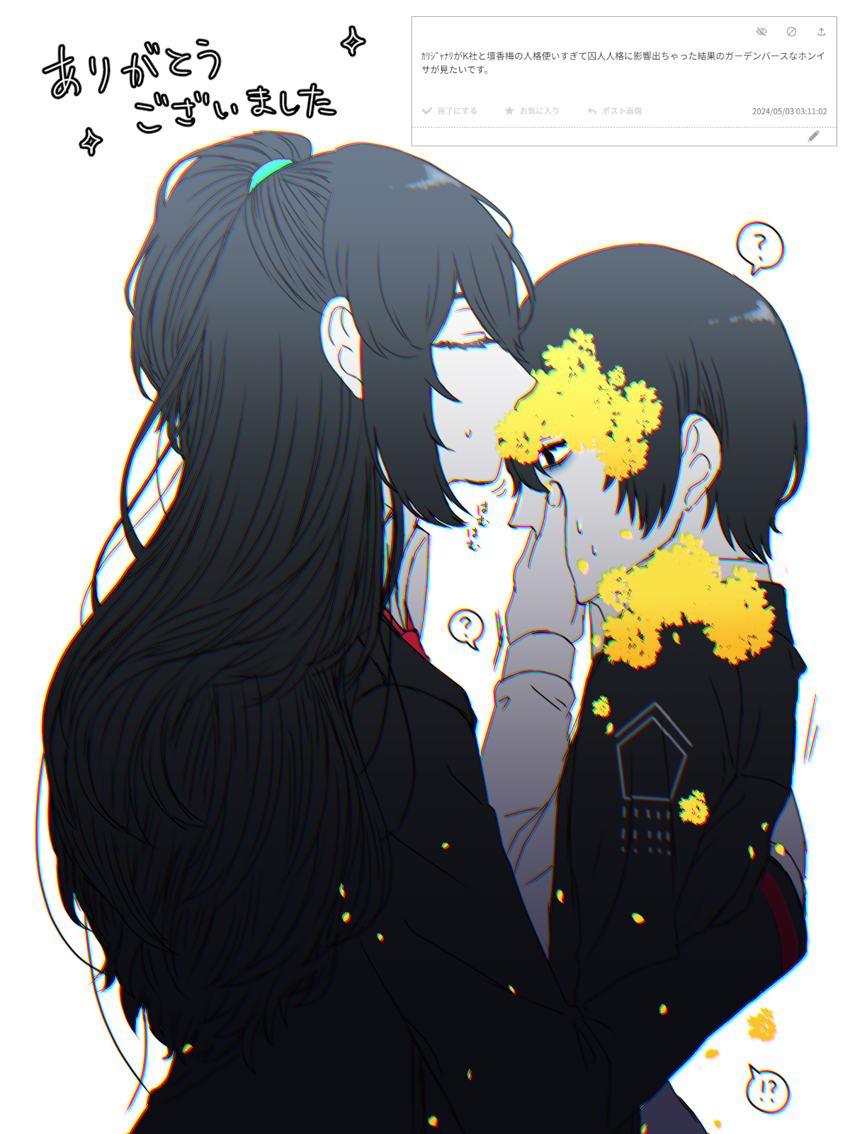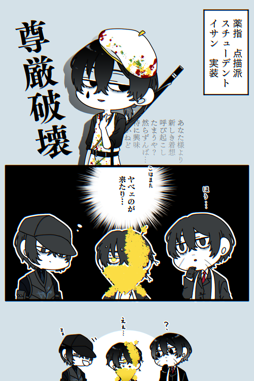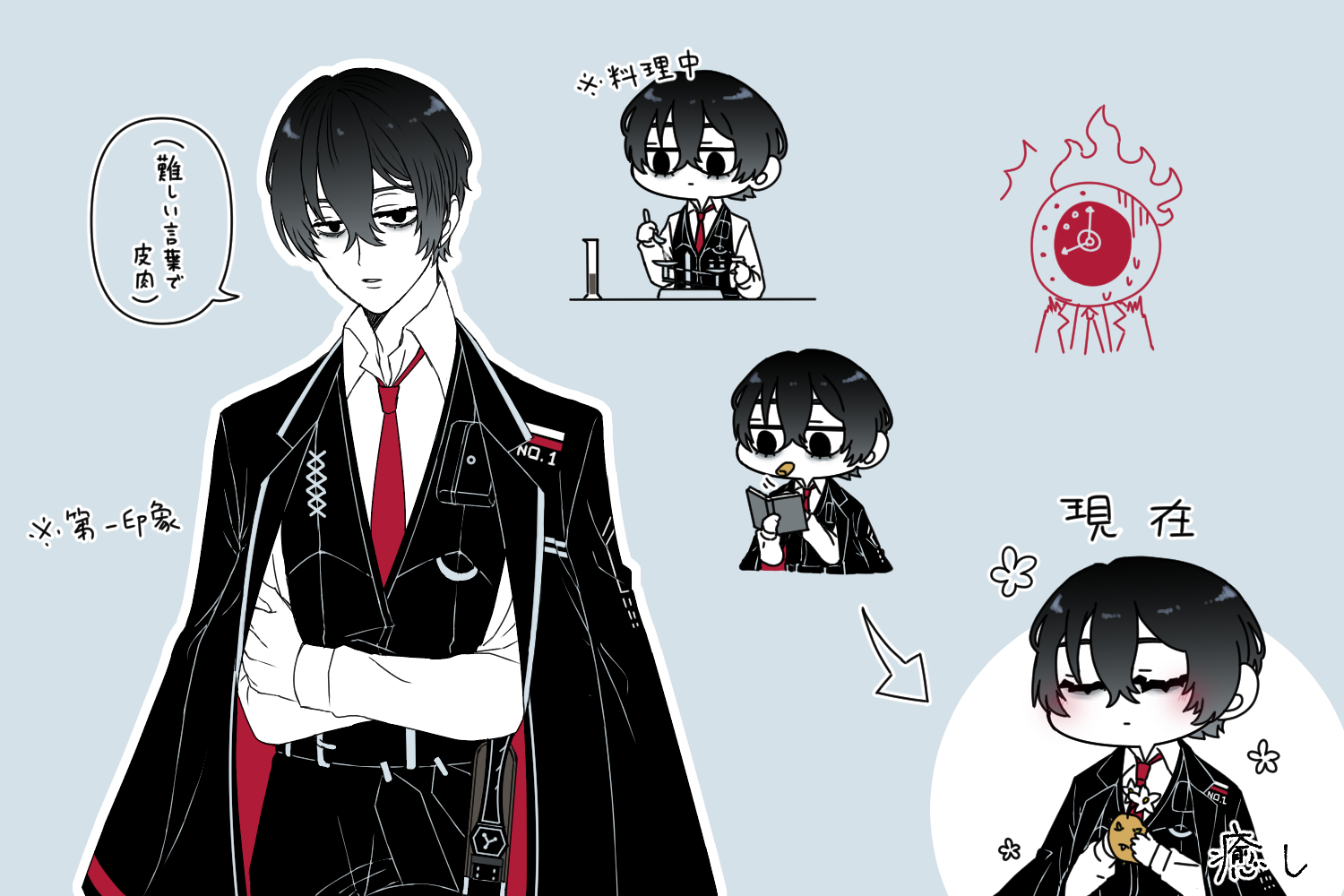 第一印象「闇属性、神経質そう、完璧主義、難しい言葉で皮肉言いそう、料理作る時に計量カップとかビーカーとか使いそう、カロリーブロックとサプリで栄養補給してそう」 ひどすぎる 2024.7.12(Fri) 21:19:55 LimbusCompany,絵 edit